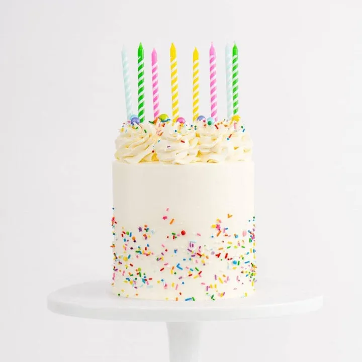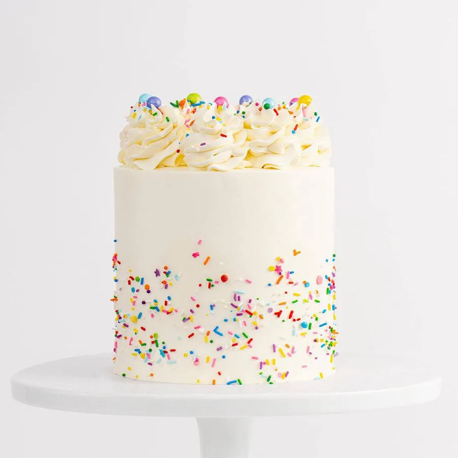 It’s time to get this party started with our best selling, fun and delicious Ultimate Confetti Birthday Cake! This cake is perfect for birthdays or any celebration. This confetti Birthday cake is covered in smooth vanilla buttercream, topped with buttercream swirls, and decorated with confetti sprinkles. Select the “confetti” flavor for Sweet E’s classic, nostalgic confetti cake or choose one of our eight other decadent cake flavors, and you’ll still get the same festive confetti outer decor!